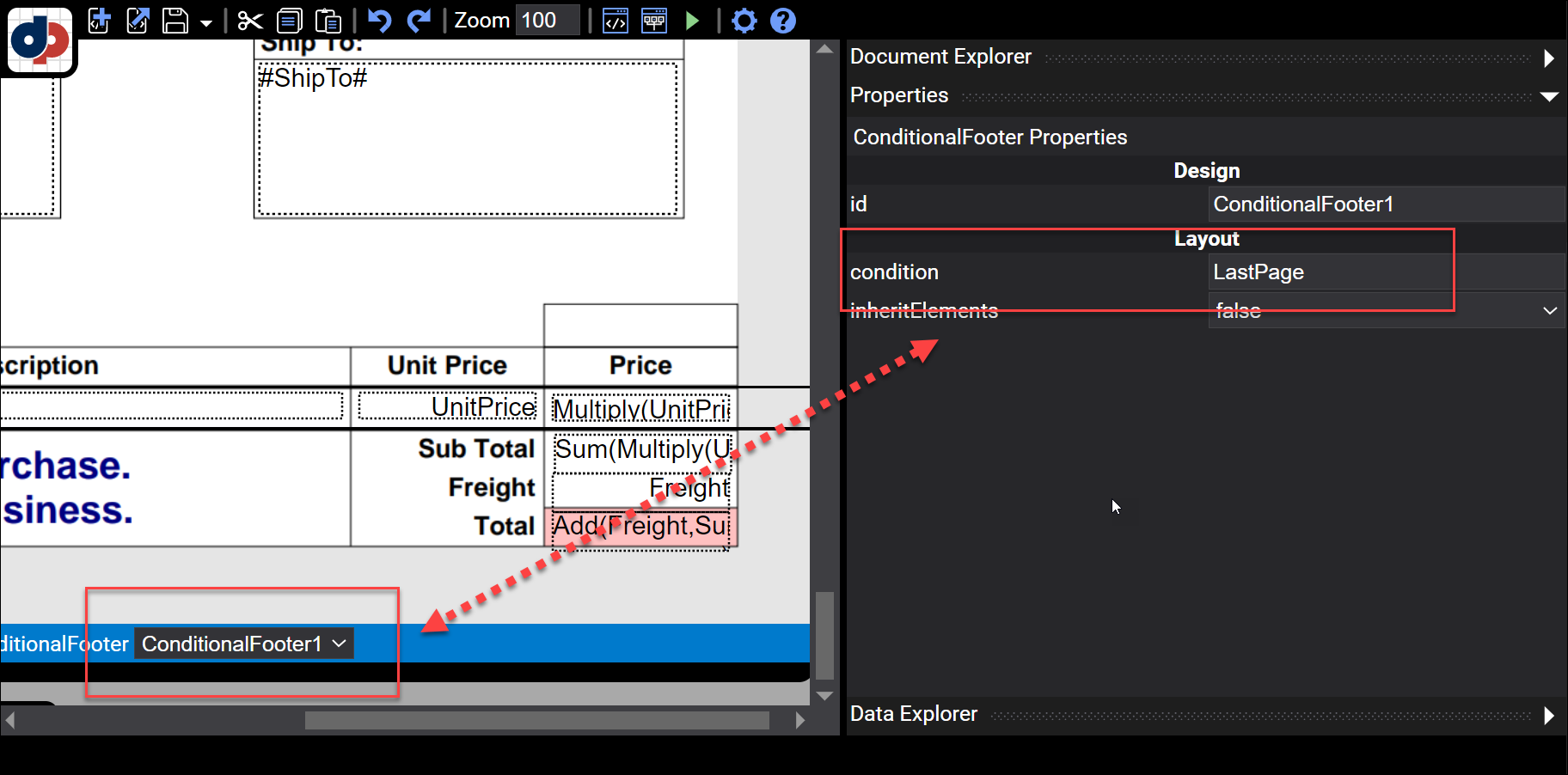 Figure 1. A conditional footer specifying the LastPage condition.