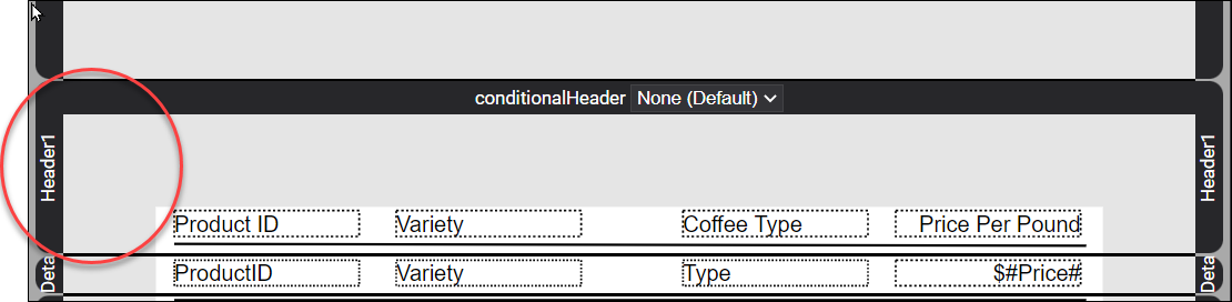 Every report has a Header that consists of zero or more non-repeating layout data elements. Place information applicable to a report's Detail data, for example a data column's name, to a header.