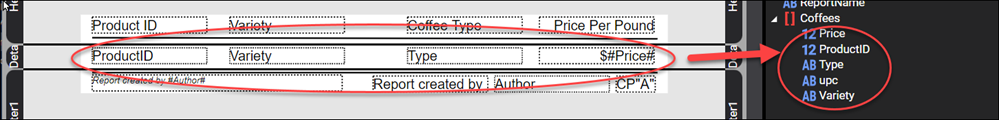 - Place dynamic repeating data in a report's details section. That repeating data is a top-level JSON element (the details section's name).