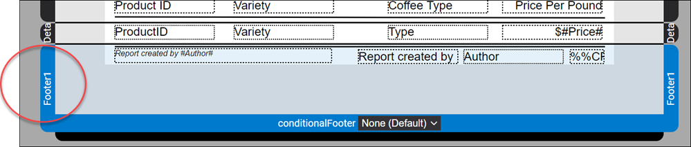 Every report has a Footer that consists of zero or more non-repeating layout data elements. Usually, footer information includes page numbering or other identifying information such as the report's date and author, etc.